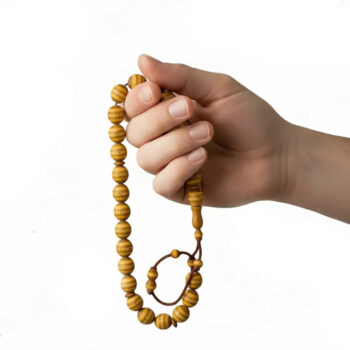 مصنوعة من خشب جوز الهند الطبيعي، هذه المسبحة خفيفة الوزن ومتينة تمنح شعورًا دافئًا وطبيعيًا، مثالية للاستخدام اليومي. تضفي لمساتها الذهبية لمسةً رقيقةً من الأناقة، مما يجعلها مثاليةً للتأمل الروحي، أو الصلاة العفوية، أو كهدية مميزة.